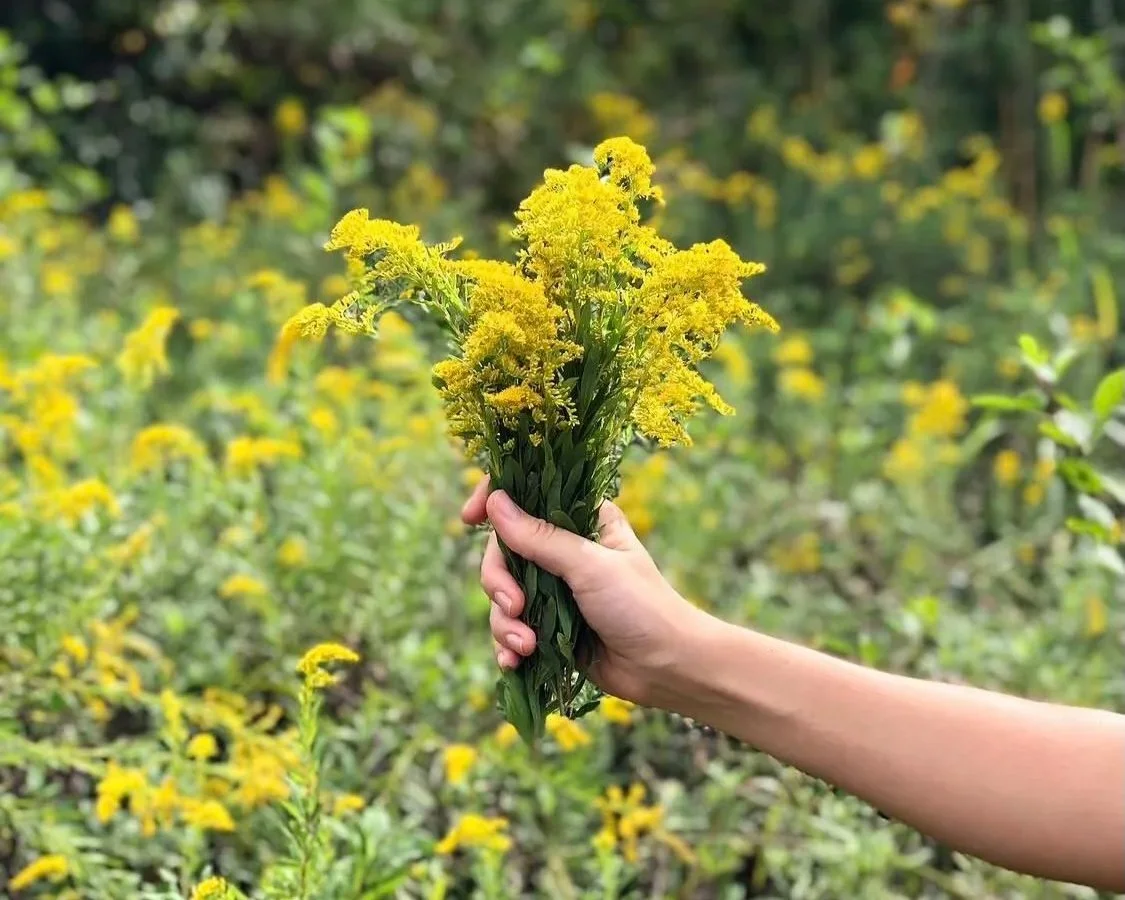 Our Allergy Tonic Tincture is a powerful combination of these, crafted from fresh, regeneratively grown herbs at their peak potency. Goldenrod, Holy basil, Reishi, and Dandelion come together to support your body through the intensity of seasonal allergies & help you stay present for all the beauty spring has to offer <3